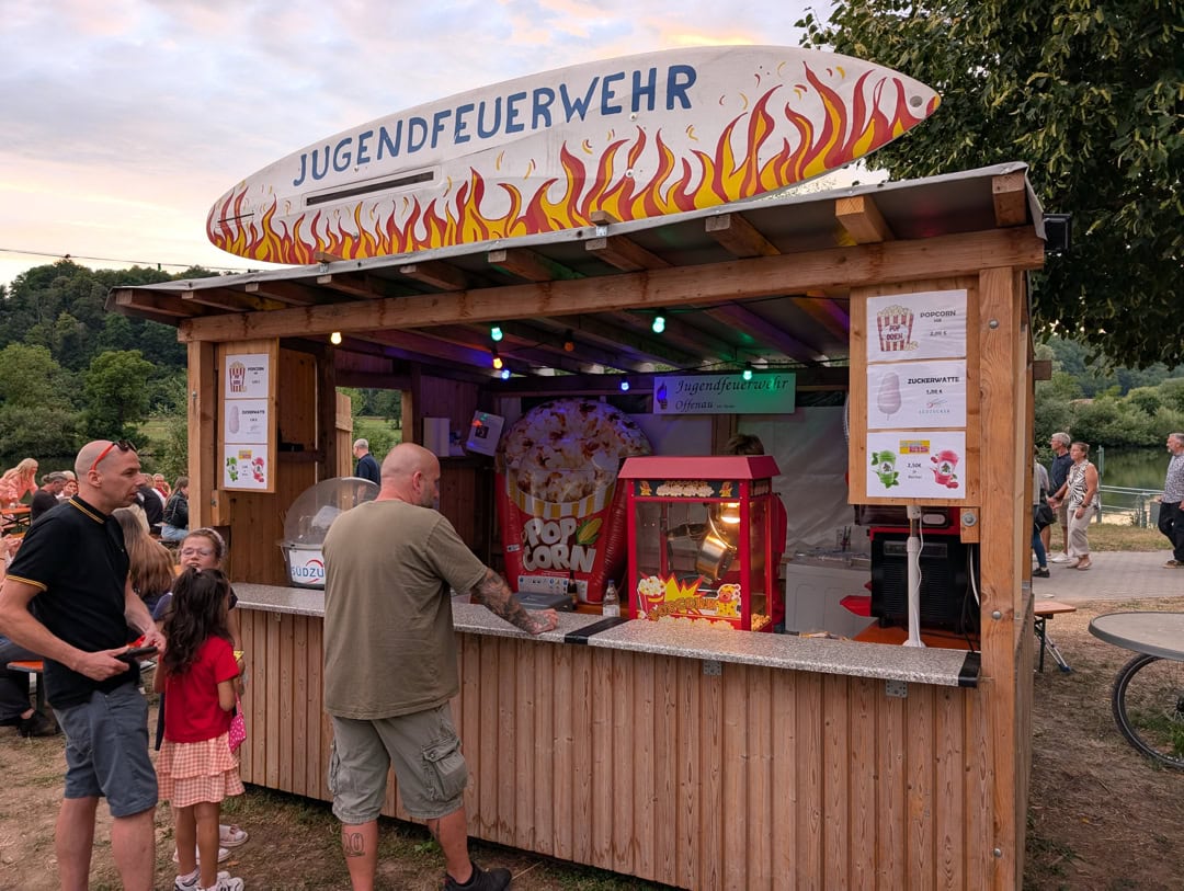 Im direkten Festmittelpunkt steht der Stand der Nachwuchs-Fire-Fighters, mit frischem Popcorn und luftiger Zuckerwatte.