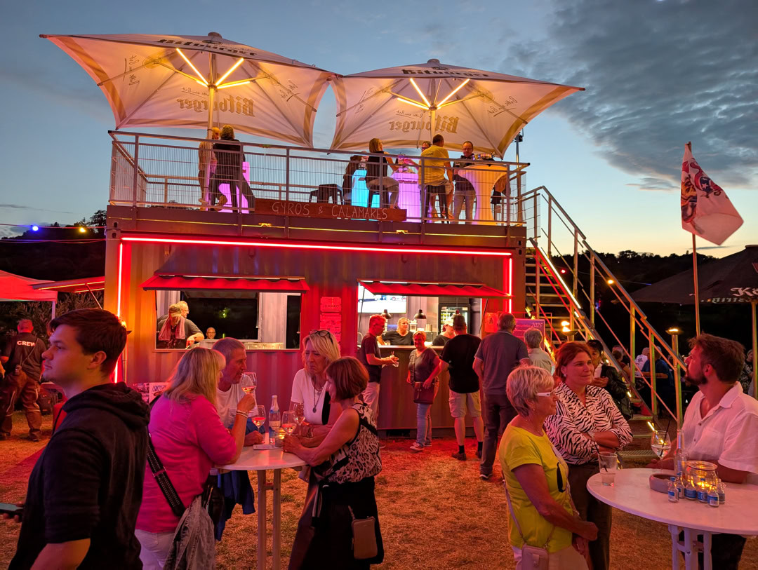 Herrlich ist auch das Ambiente am Neckarufer. Die Sitzplätze direkt am Wasser, dazu an allen 3 Festtagen Musik auf der Musikbühne.
